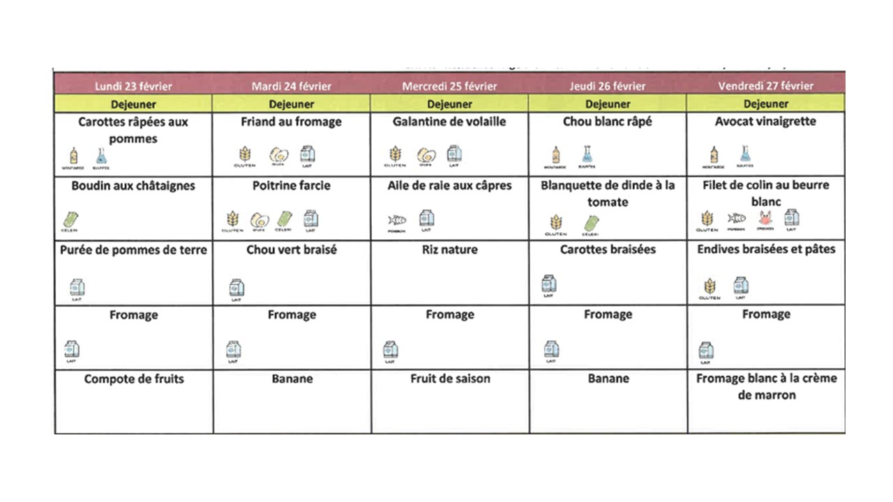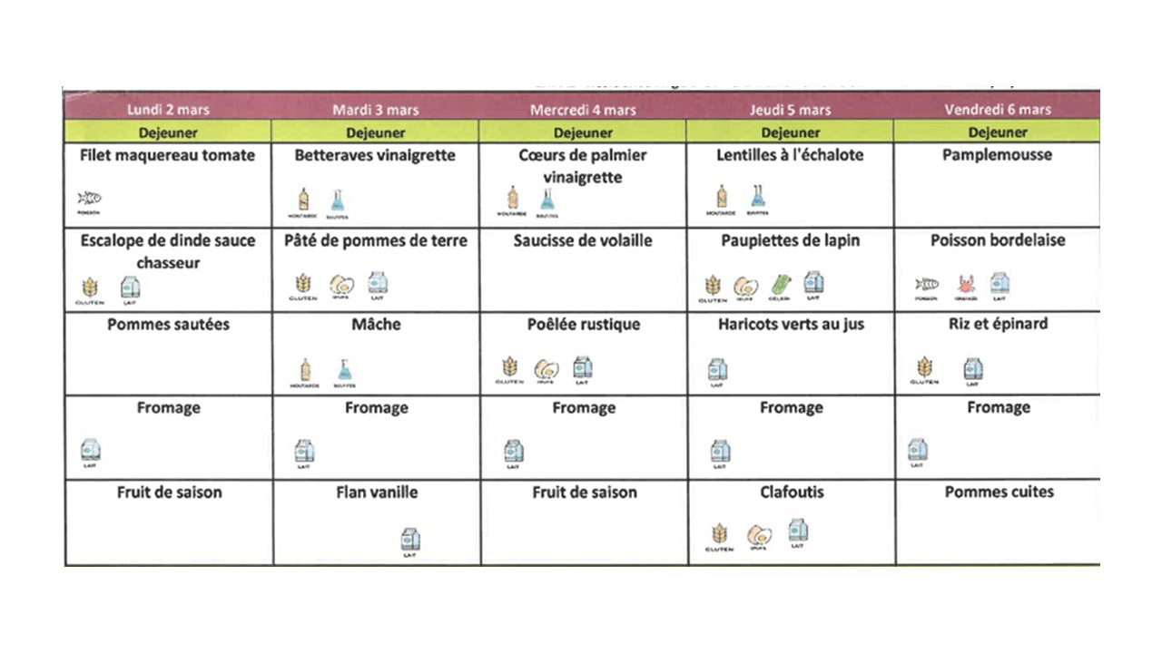 Menus "maternelle"